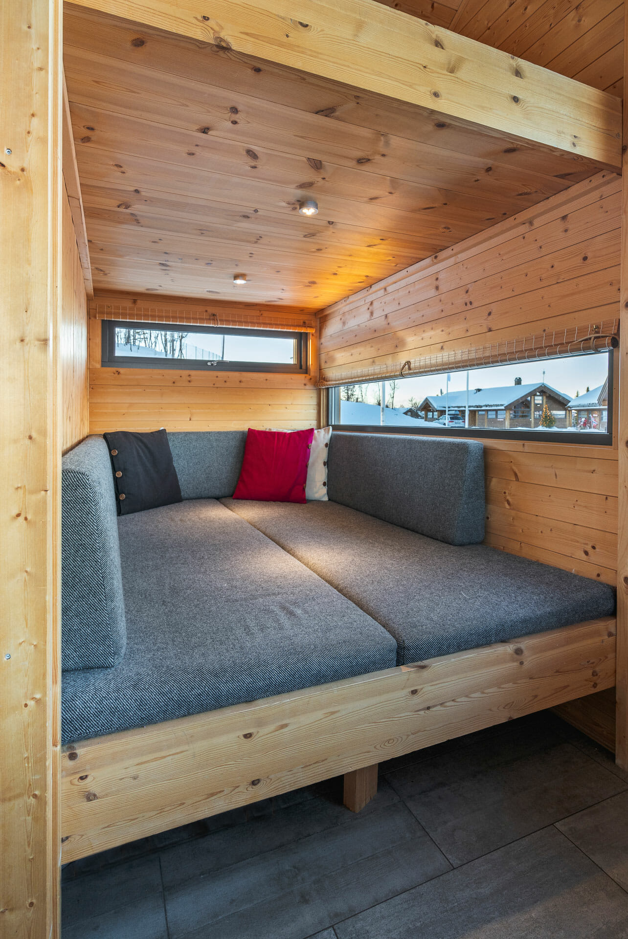 Veslesåta er 25 kvm stor og har 4 sengeplasser hvorav ekstra kapasitet til 2 personer etc.